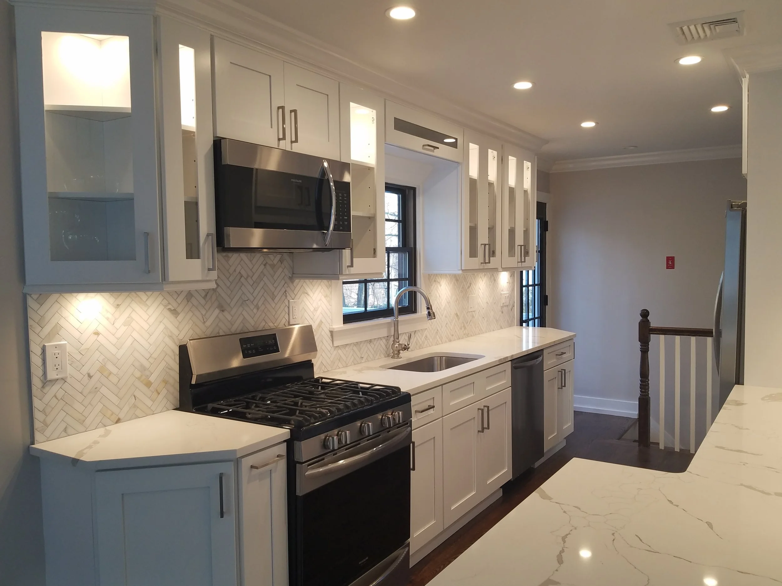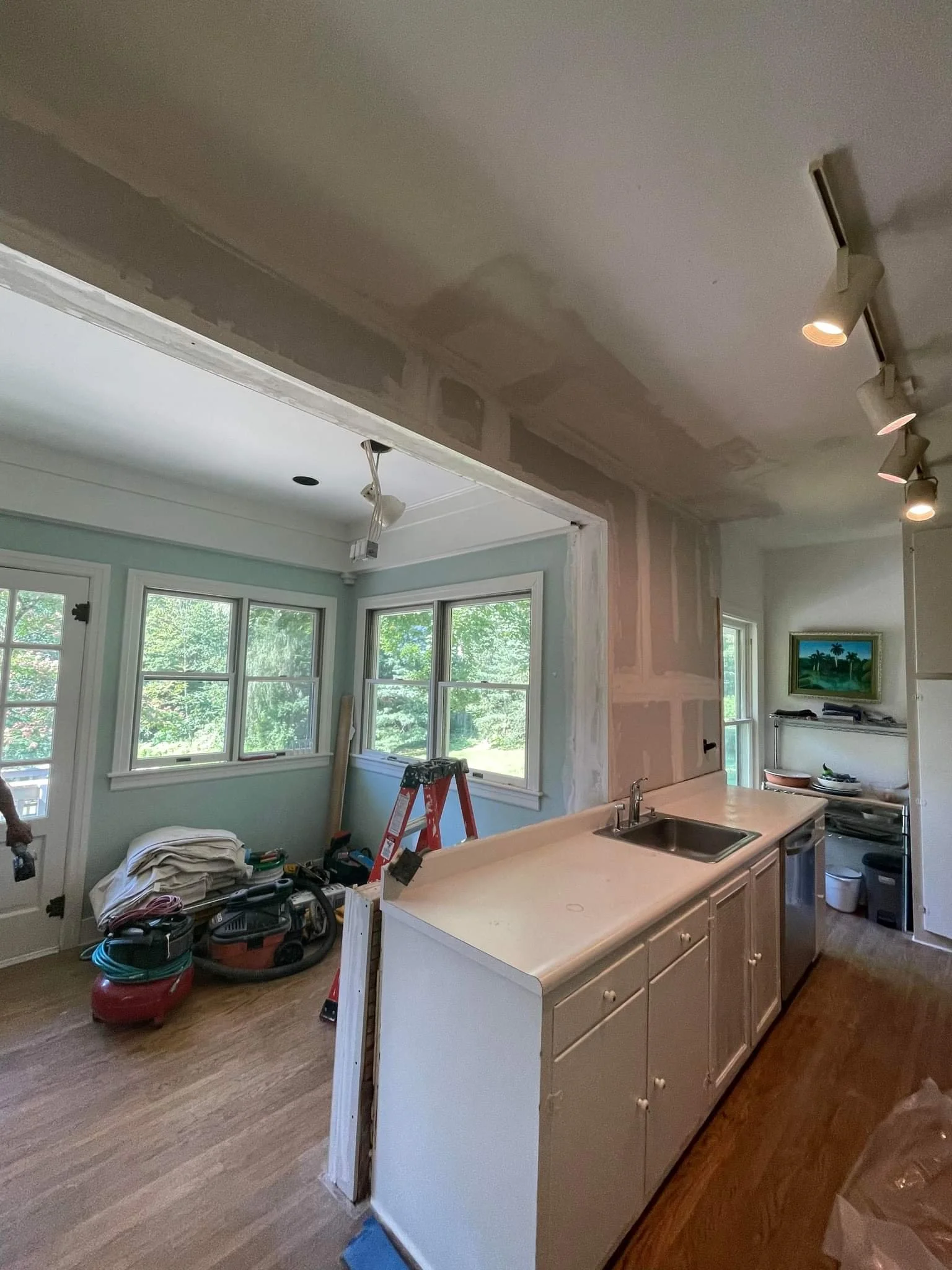This client was looking to replace the hardwood flooring on the entire first floor of their home, and decided to take advantage of the opportunity to update their kitchen with new cabinets, counters, and appliances while they were at it.