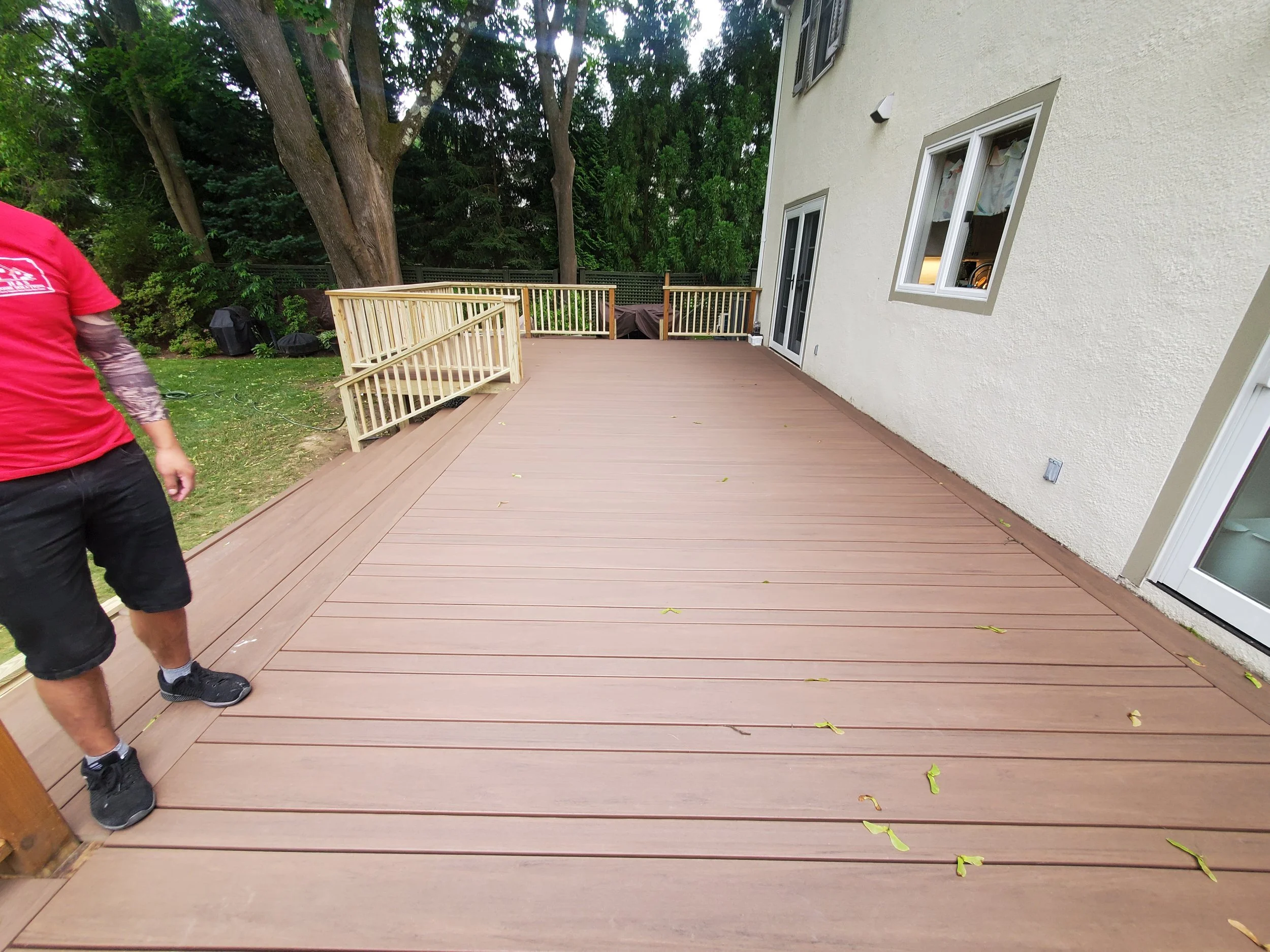 Now, they can enjoy this beautiful outdoor space without worrying about cracks or splinters underfoot! The project was completed in a weekend, with the deck dry and ready to walk on after a week.